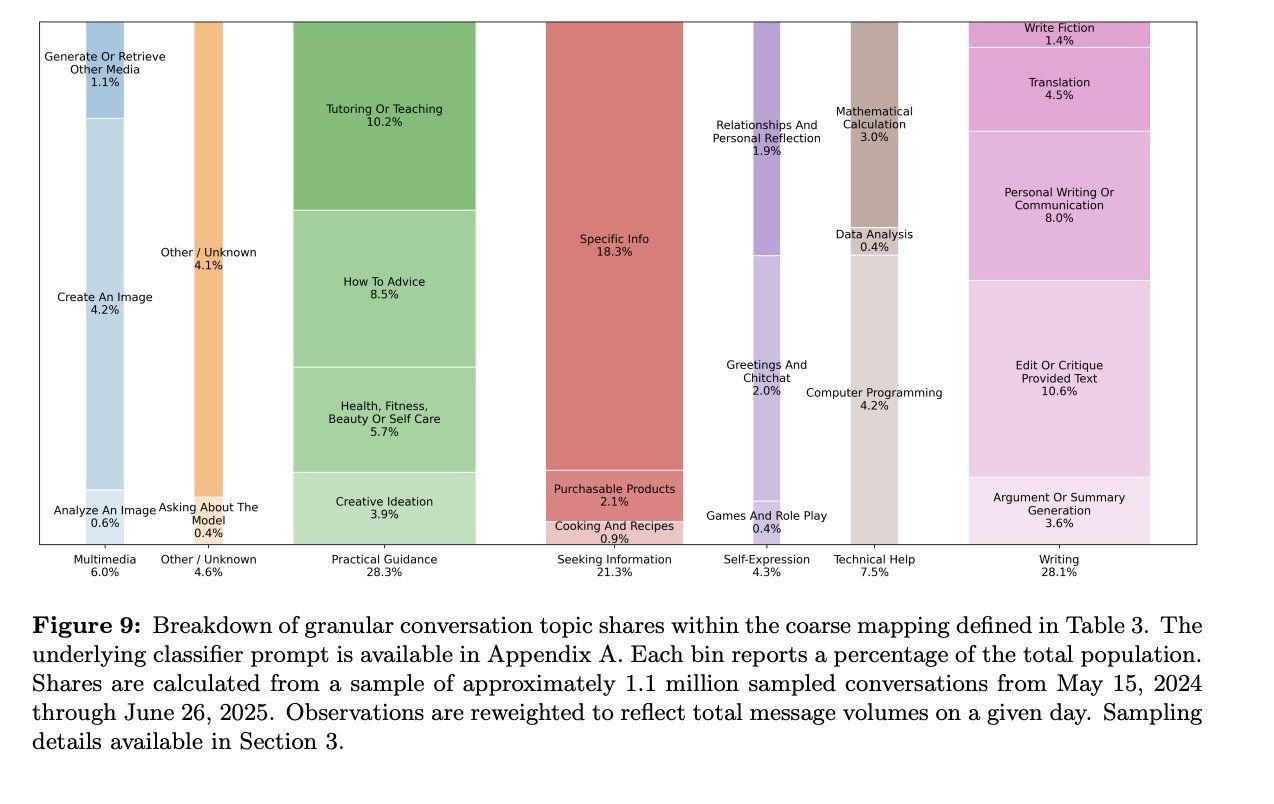 The leaked report sampled 1.1 million conversations from OpenAI’s massive user base, breaking down exactly what people ask AI to do. The results? Most folks stick to the basics: